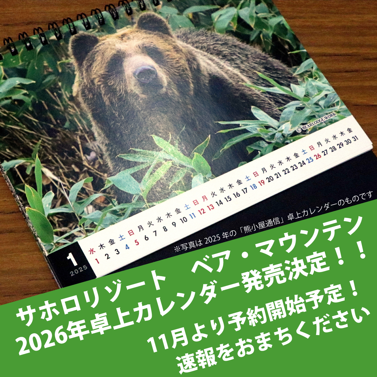 【事前告知】ベア・マウンテン2026年卓上カレンダー発売決定